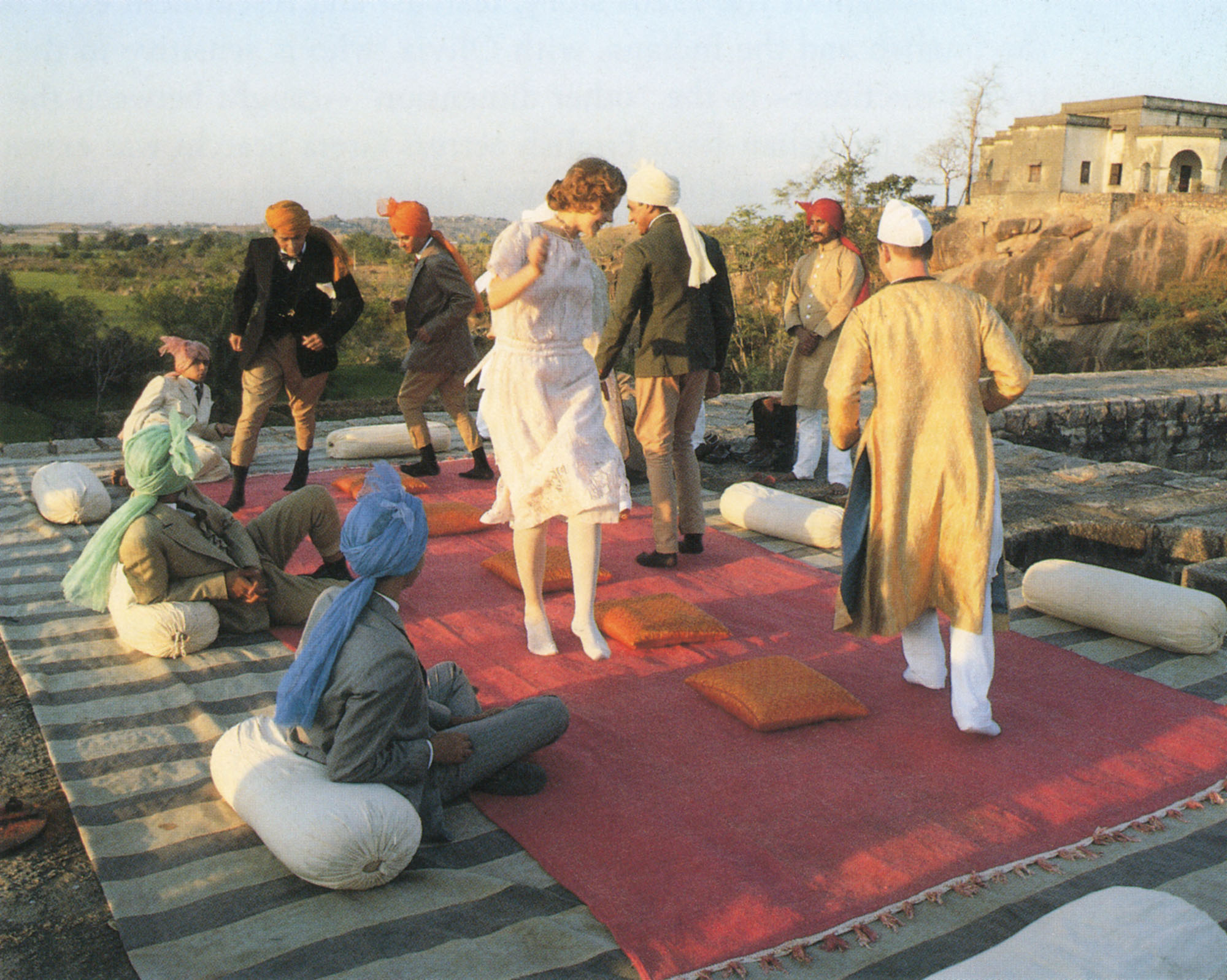 The India of Heat and Dust is a balance of visual splendor and the understated ironies that are characteristic of Ivory-Jhabvala work. Merchant spares nothing in the production values -- we move from ornate banquets in 1923 to breathtaking vistas in present-day Kashmir -- yet the film's grand exteriors provide the backdrop to closely observed interior lives. The director views India with a lens that is equally informed by his lyrical early work on the subcontinent (The Householder, Shakespeare Wallah), and by his later penetrating social scenes of Henry James and Jean Rhys (The Europeans, Quartet). Richard Robbins provides the music and the score is among his best, employing Indian master musicians in arrangements that bridge Indian classical with 1920s period songs.