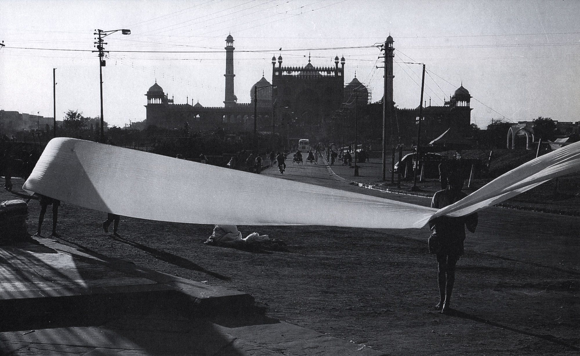 The Delhi Way --produced, written, photographed, and directed by Ivory--was begun before The Householder but completed after it. A documentary of Delhi, it scans the city's historic past that includes successive Afghan, Moghul, and English invasions, while it reveals its variegated life of the present. At the opening a train moves along a landscape in darkness to evoke (as in a film by Ray) the passage of time; and past and present are thereafter anchored in contrasting views of Shah Jahan's Red Fort and King George V's new capitol. The film, in which time has a devouring quality, is impressionistic as it takes in the new capital. An army of civil servants in white garments ride to work on bicycles, while an anonymous beggar sits nodding by a roadside tree; an upper-middle-class flower show on the grounds of a private club appears side by side with views of dust storms, constricted slum dwellings, crowded bazaars, and posters of Indian film idols. Ivory evokes the bewildering legacy of Delhi, and the film acts as an effective bridge to Shakespeare Wallah, in which time and change are central concerns.